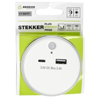 Incarcator priza cu USB-A si USB-C 3,4A cu senzori si lampa de veghe