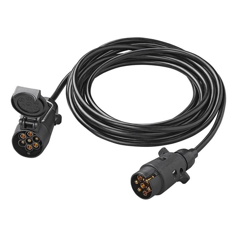 Cablu 3m pentru remorca, caravan, rulota 2 stechere tata si mama 7pini Semnalizare stanga si dreapta, lumini ceata, franare si dat cu spatele Cablul de conexiune remorca-tractor are 425g si 7 fire de 0,5 mm² Poate fi utilizat pentru conectarea remorcilor si toate conexiunile de 12V Cablul ofera posibilitatea de a prelungi o conexiune pana la 3 m