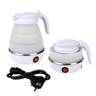 Cu design pliabil perfect pentru calatorii Corpul pliabil este din silicon moale Elementul de incalzire este din inox Capacitate 600ml, putere 600W 220V Cu protectie la supraincalzire fara apa Fierbe apa in 4 – 6 min si se opreste