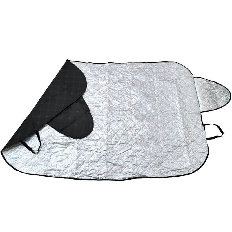 Folie parasolar parbriz iarna vara 140x95cm Iarna previne depunerile de zapada pe parbriz Vara respinge radiatia UV si protejeaza interiorul Se monteaza prinzand extensiile in portiere Folie din aluminiu cu interior antizgariere