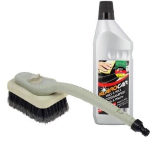 Pachet perie de spalat auto cu adaptor cupla furtun + sampon auto cu ceara fabricat in Germania 1L Perie fina de spalat masina fara zgarieturi