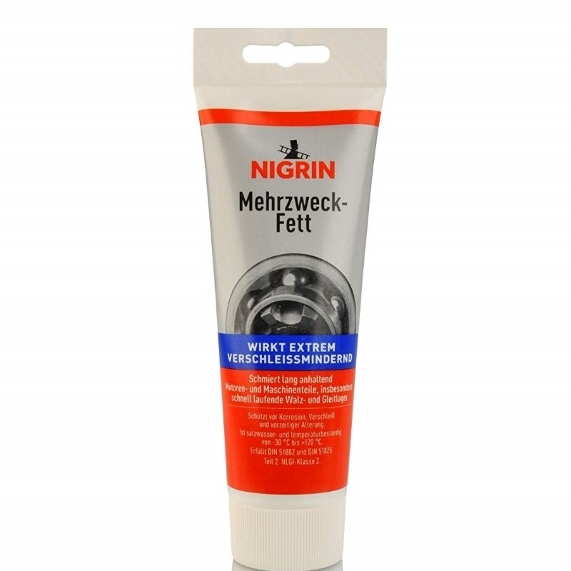 Nigrin vaselina universala rulmenti si angrenaje metalice Lubrifiant de inalta calitate, DIN51802, DIN51825 NLGI 2 Rezista la apa sarata si la temperaturi de + 120 °C Contine ingrediente active ce protejeaza impotriva coroziunii Tub 250gr, nu contine silicon, rasini, sau grafit